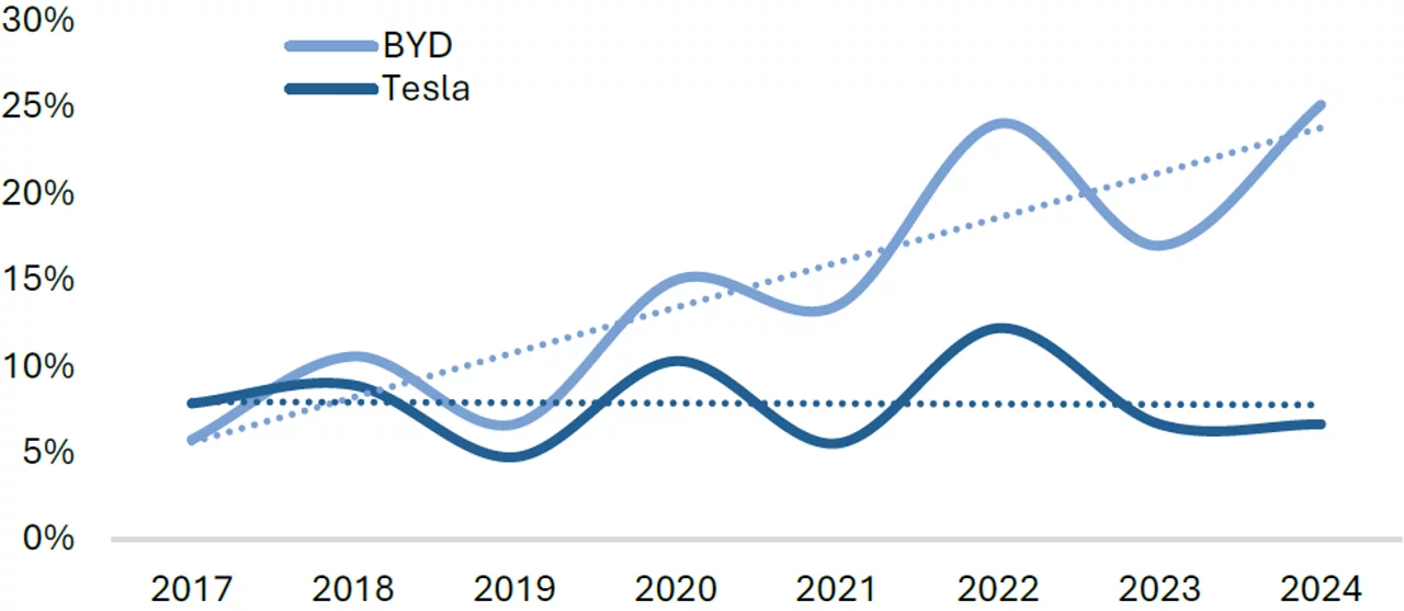 The story that began a decade ago with different investment philosophies has reshaped the global automotive industry. Without a dramatic shift in their approach, Western manufacturers could risk losing long-term leadership to China, with BYD at the forefront.