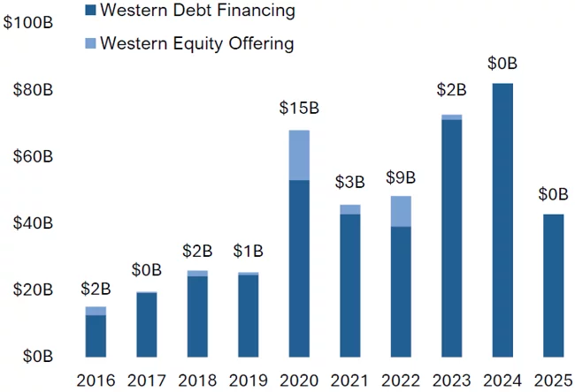 BYD took the opposite approach, maintaining aggressive investment in both innovation and capacity. This countercyclical strategy was possible because Chinese manufacturers favored equity financing, while Western automakers, relying on debt financing, became increasingly burdened by the high-interest environment. BYD's recent $5.6 billion equity raise in 2025 exemplifies this approach, providing capital without interest obligations and putting pricing pressure on their debt-burdened competitors.